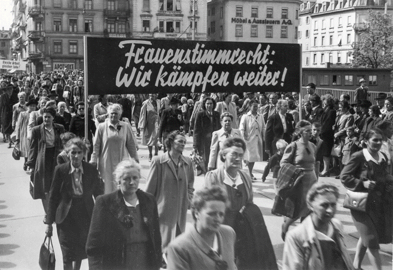 No fue hasta 1971 que ese derecho fue aprobado y las mujeres pudieron votar pero en algunos sitios como el cantón de Appenzell Innerrhoden ese derecho no llegó hasta 1991 y con mucha resistencia del propio cantón.